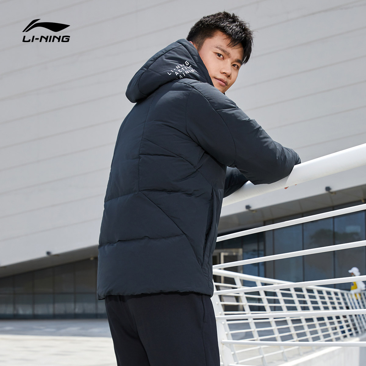 Li Ning medium long down jacket men's winter official website men's duck down warm jacket men's hood thick sportswear