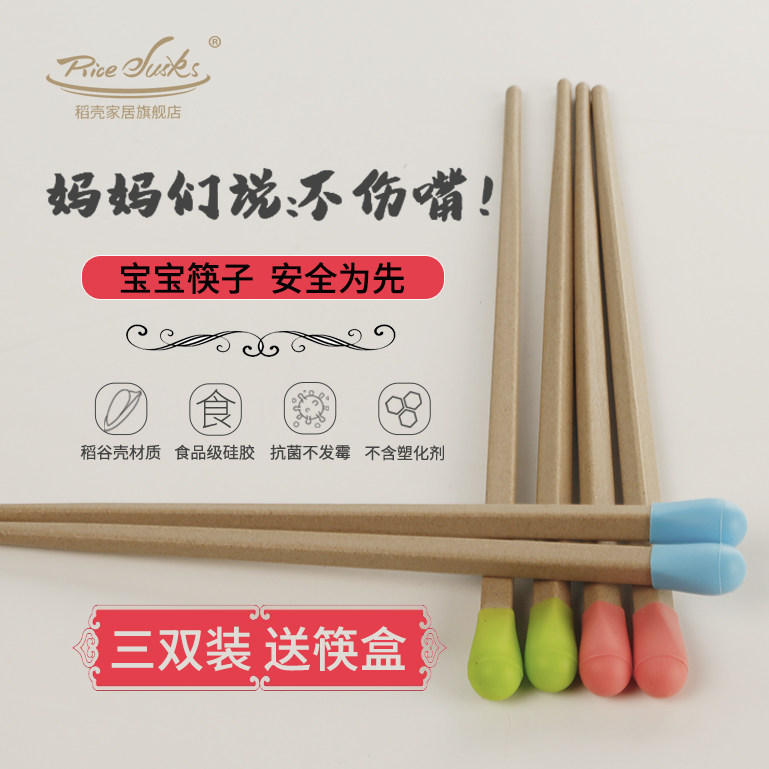 Rice husk children chopsticks Household children Baby special kindergarten non-slip training chopsticks small short quick son portable storage