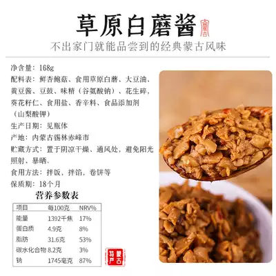 White Mushroom Sauce Prairie Spicy Original Mushroom Sauce 168g Bottle Inner Mongolia Special Rice Mixed Sauce 3 Bottles