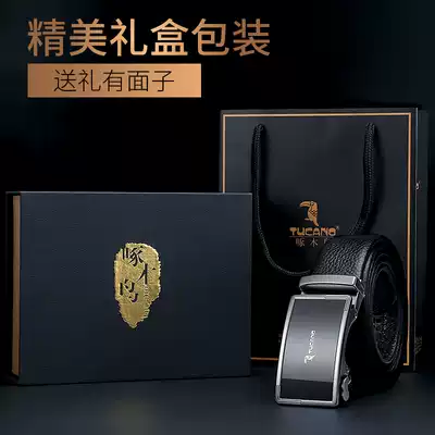 Woodpecker Belt Men's tide leather automatic buckle Joker head layer cowhide belt men's gift box set set men's pants belt