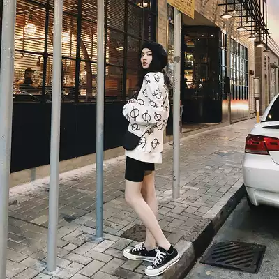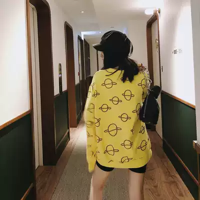 Xiaonian customized girls ' autumn and winter tops lazy style white long-sleeved pullover round neck thick cotton T loose Korean cotton
