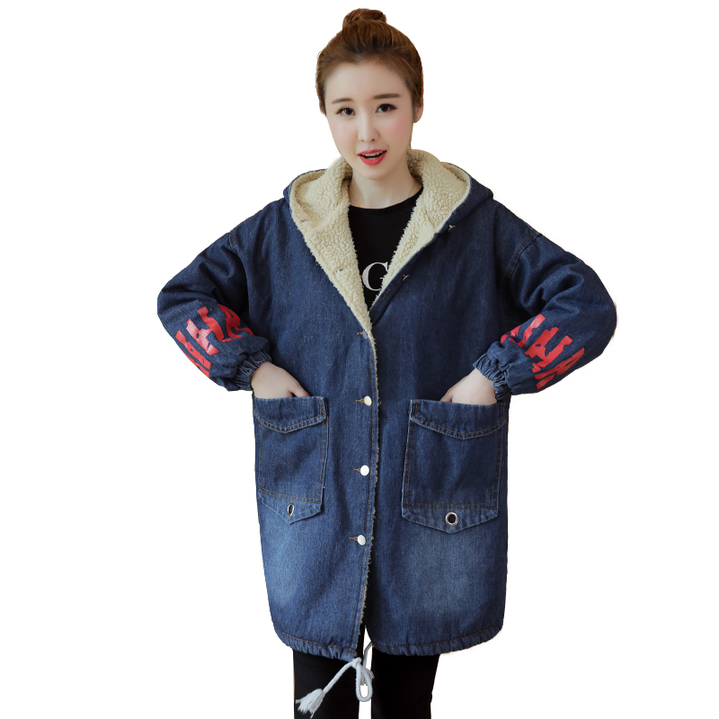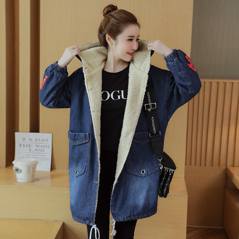 2020 winter new Korean version of the student medium and long version of the large size women's clothing plus velvet thickened warm cotton clothing denim jacket women
