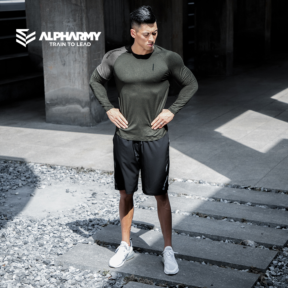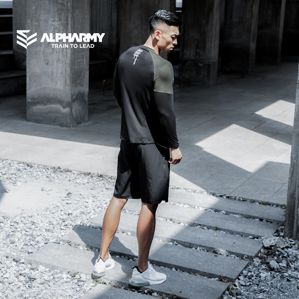 Alpharmy quick-drying fitness long-sleeved sports T-shirt men loose running training muscle European and American moisture wicking