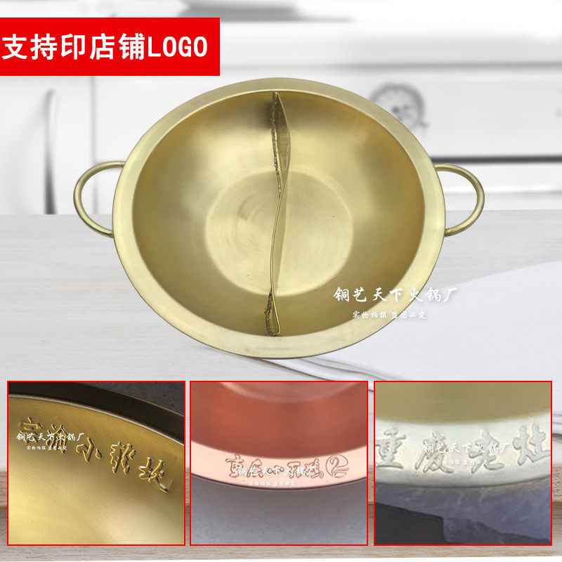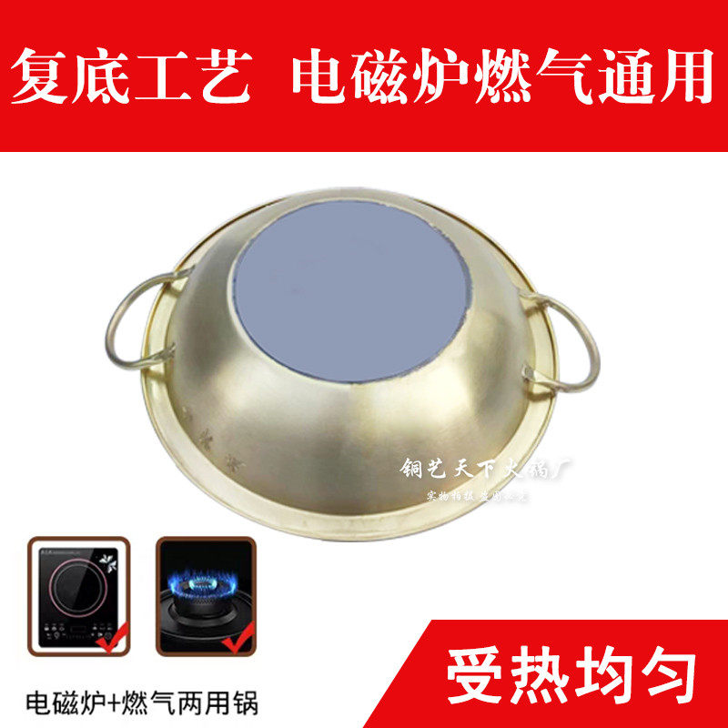 Induction cooker mandarin duck bronze hot pot double ear copper hot pot thickened primary-secondary pure copper hot pot pan gas Nine Miyigong Three Taste Pot