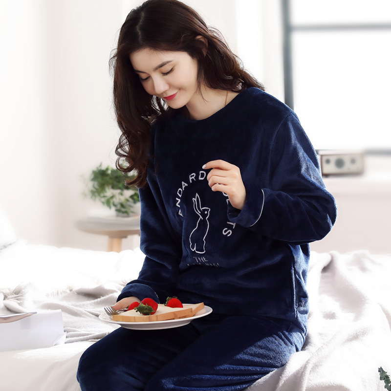 Pajamas female winter coral velvet thickened plus velvet autumn and winter warm long sleeve cute flannel home suit can be worn outside