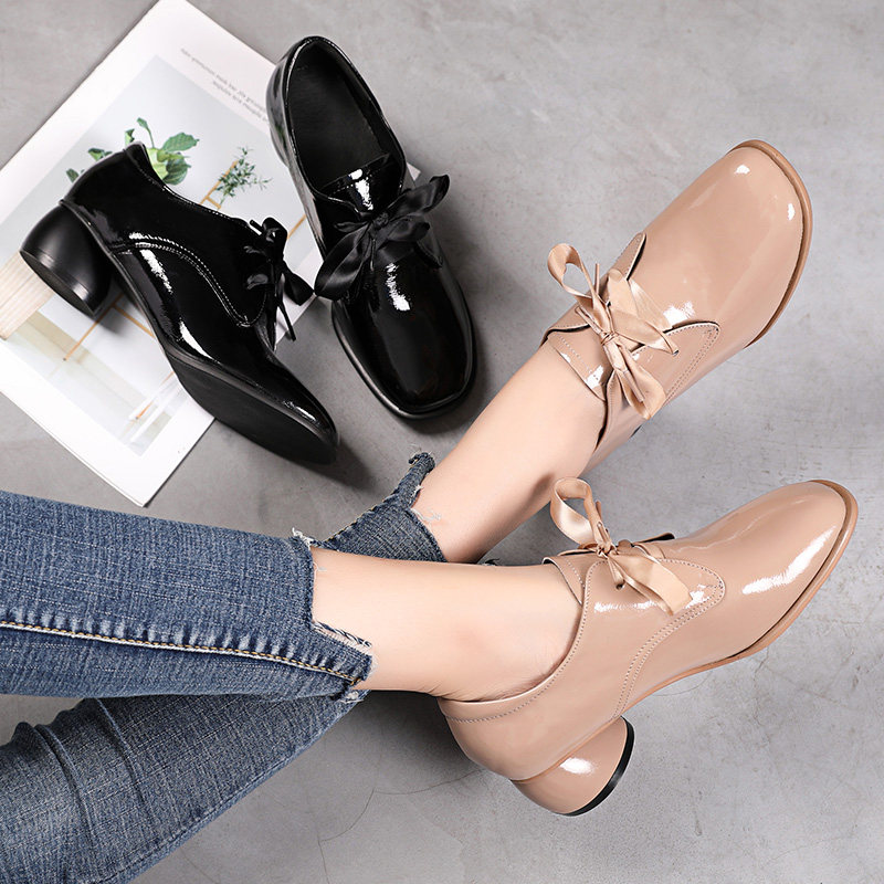 Shoes Women Spring And Autumn 2022 New Block Heel Single Shoes Women's Fashion Patent Leather Small Leather Shoes Deep Mouth Leather Mid Heel Women's Shoes
