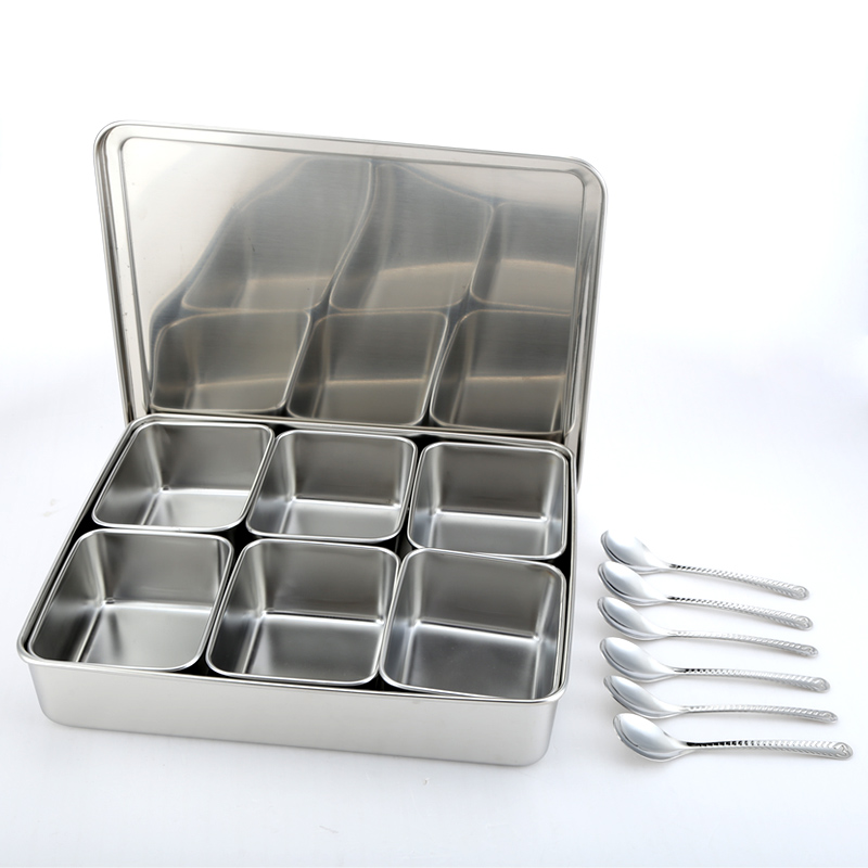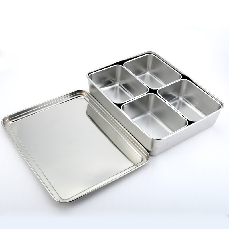 Thickness 304 stainless steel Japanese flavor box 4 grid 6 square box cube box Food display box