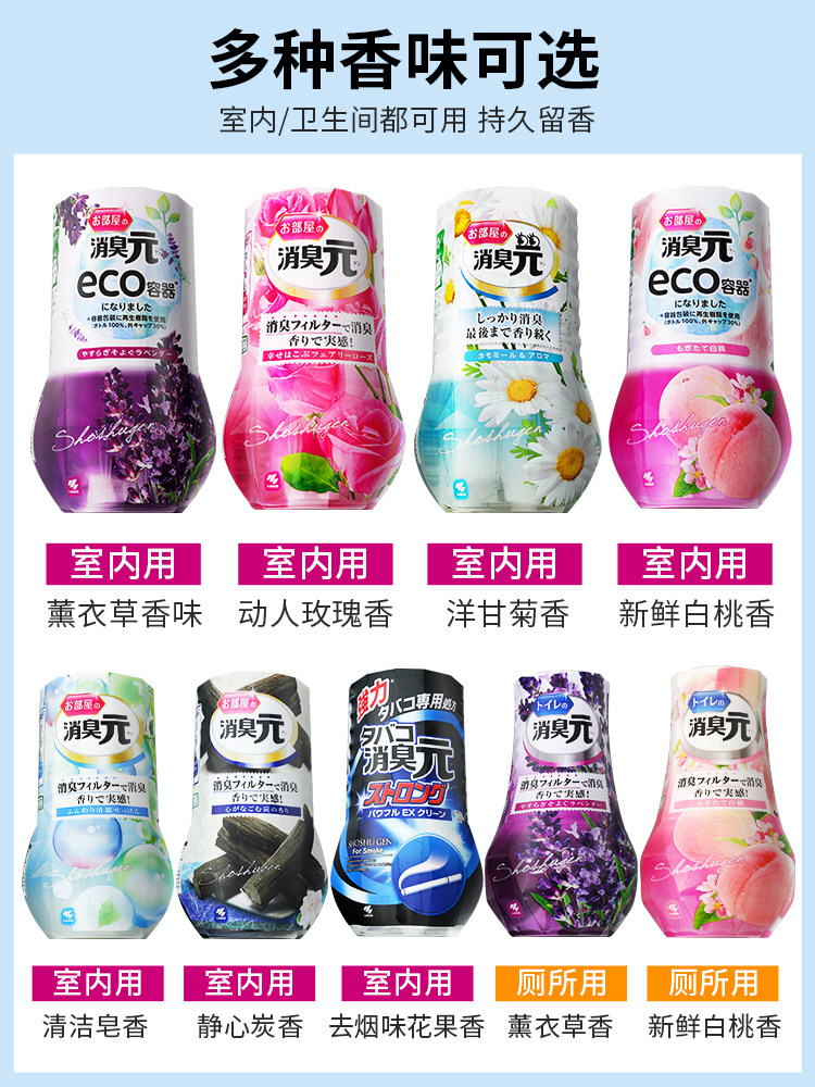 Toilet (Lavender) Indoor (Chamomile) Indoor (Rose) Indoor (Lavender) Indoor (Lavender) Indoor (Lavender) Indoor (Charcoal)