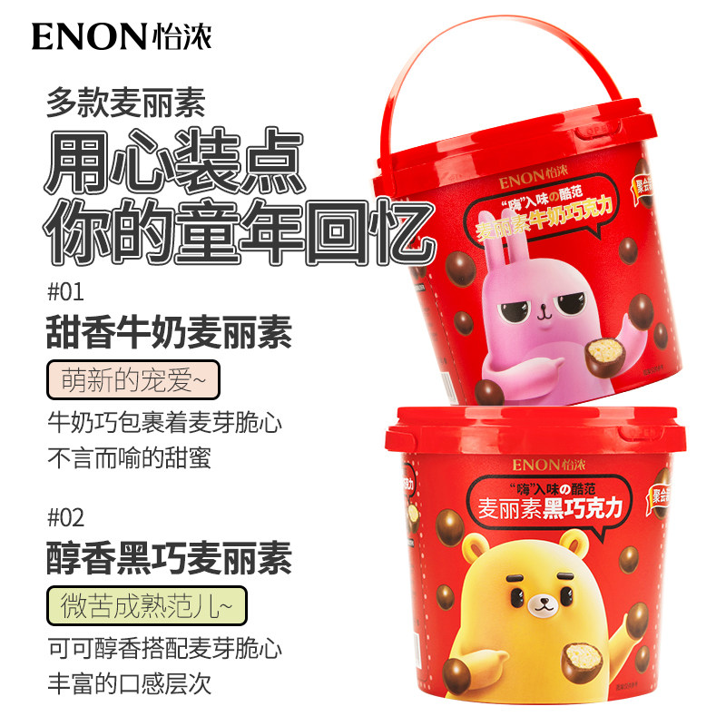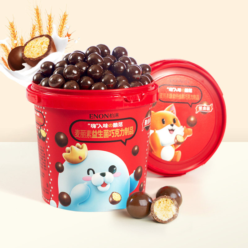 Inono Mai Li Su Barrel 520g Nostalgic Dark Chocolate Filling Chocolate Malt Crisp Heart Ball Kids Snack