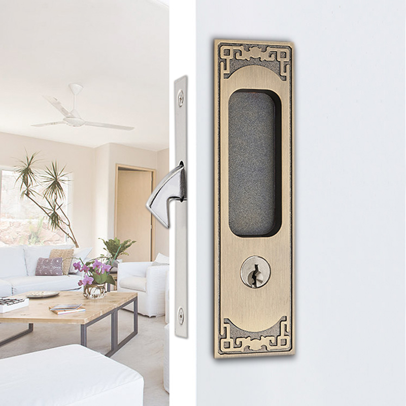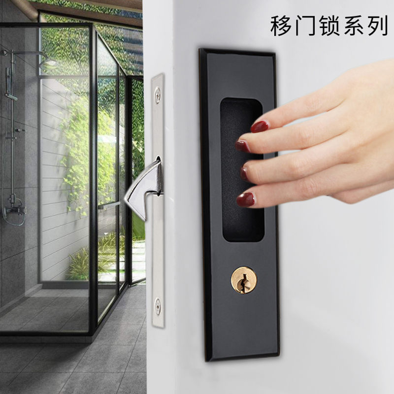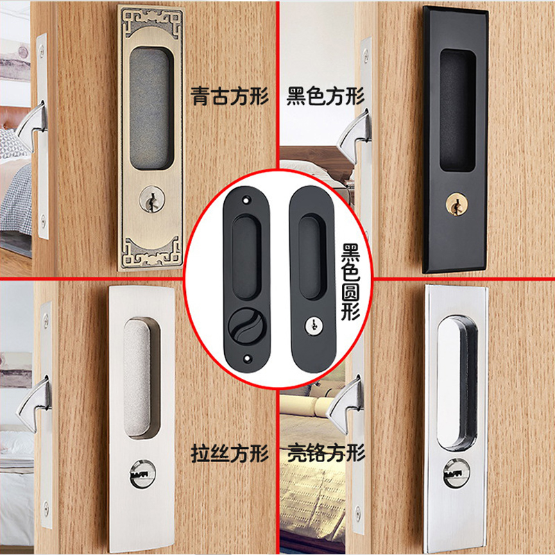 Modern mobile folding powder room new Chinese wooden door lock light luxury double-sided lock balcony push-pull invisible simple door lock