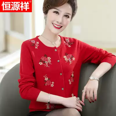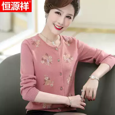 Hengyuanxiang mother spring and autumn wool cardigan jacket foreign style new middle-aged and elderly women's loose thin sweater