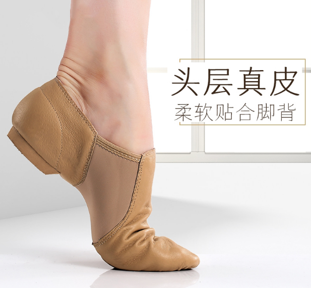 Camel leather stretch cloth jazz shoes Black leather stretch cloth jazz shoes
