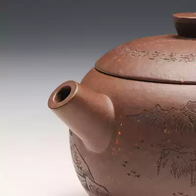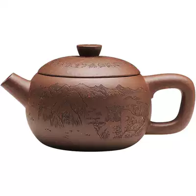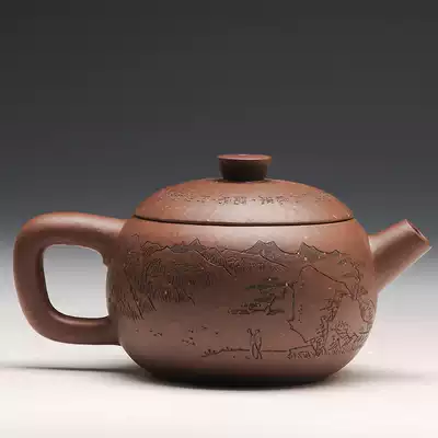 Zisha House Gu Qin Yixing raw ore rough purple full hand engraved teapot purple sand pot sketch 200cc