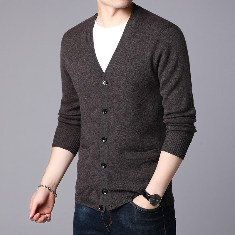 100 pure cashmere male wool sweater male 100 lap pure cashmere cashmere base section buckle knit cardiovert V collar thickened jacket