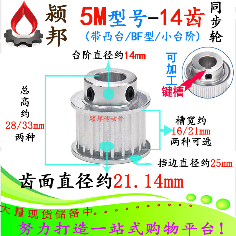 5M14 teeth 15 teeth synchronous wheel BF type 14T with lug boss aluminum alloy stepper motor motor synchronous belt pulley