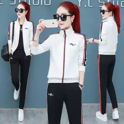 Sportswear leisure suit women's autumn 2020 new fashion spring and autumn large size loose long-sleeved stand-up collar sweatshirt three-piece suit