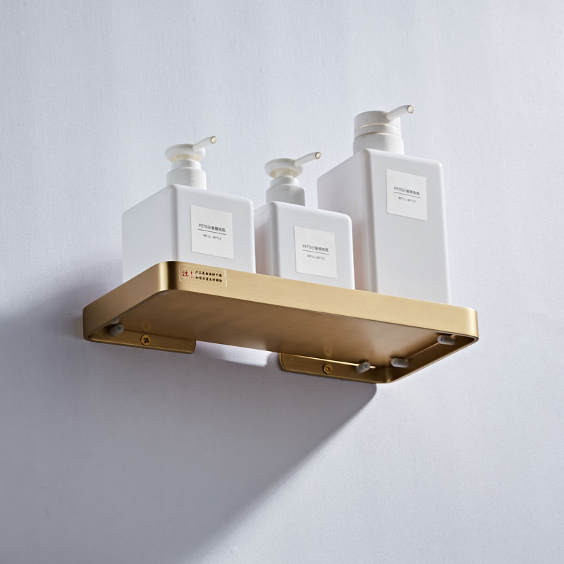 Nordic simple brass brushed gold rack all copper one word partition wall hanging free punch mini gold storage rack