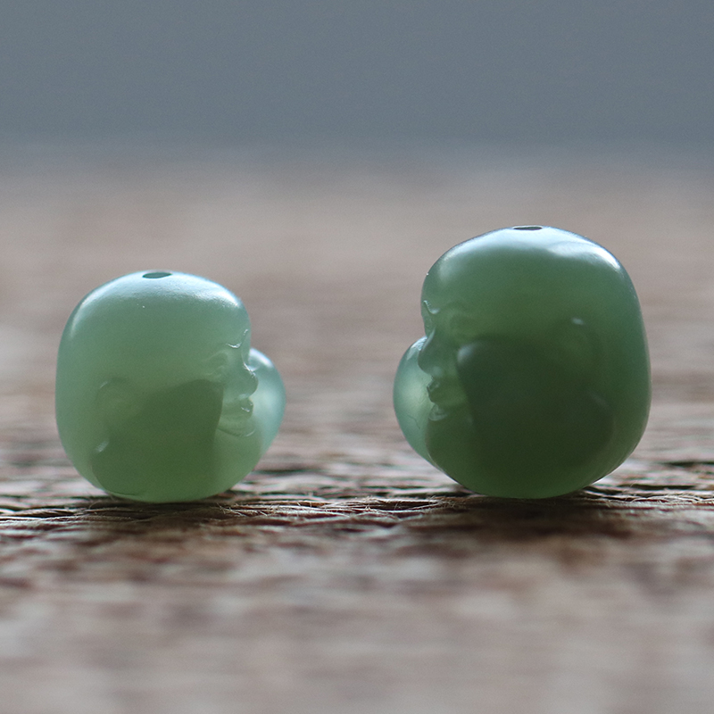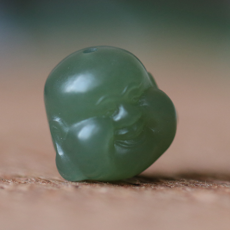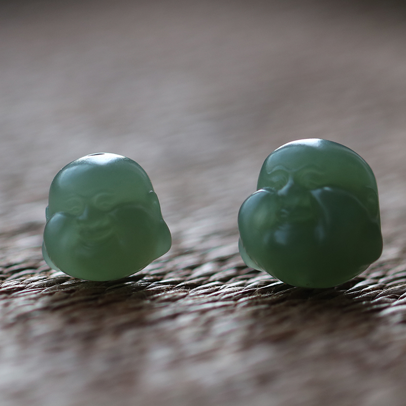 Hetian jade Buddha head loose beads lake green Maitreya Buddha pendant clavicle chain pendant Wenwan bracelet bracelet with beads