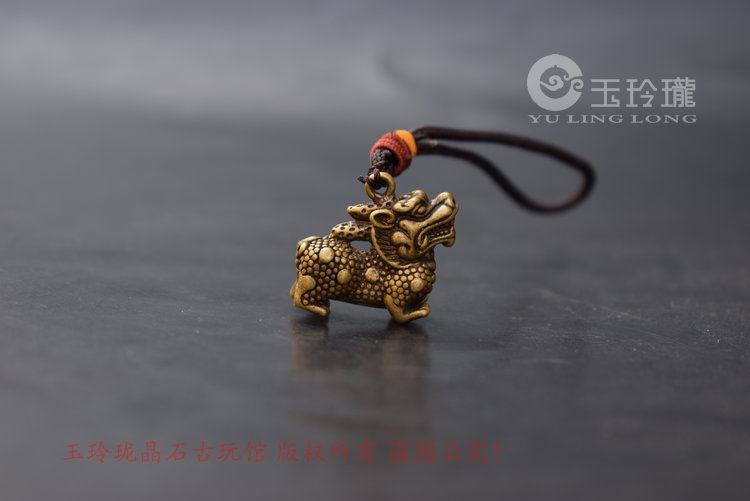 Solid copper Kirin small paperwork antique copper fine sculpture of the Swiss Key knuckle package hanging antique copper copper