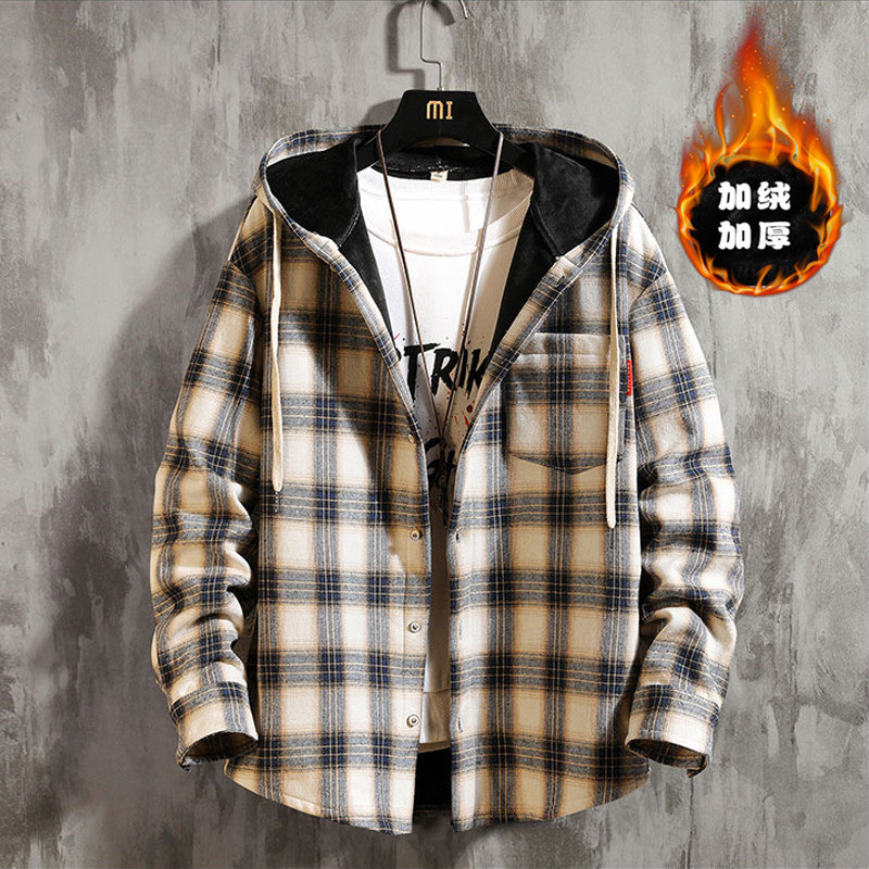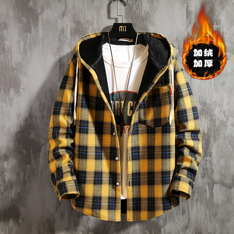 Spring and Autumn Boys Plaid Shirt 12 Big Boy Fat Boy 13 Hooded Jacket 15 Years Old Junior High School Long Sleeve Shirt Men's