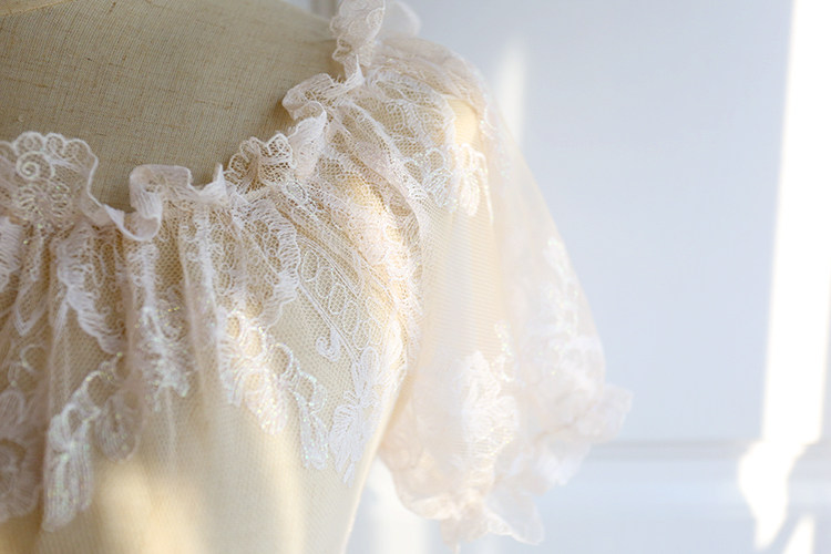 French lace retro latent pink lolita dress exquisite inner build shirt ruffled puff sleeves short
