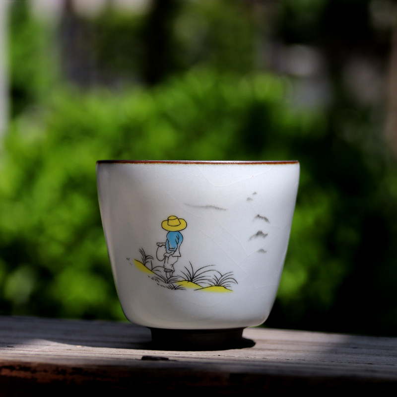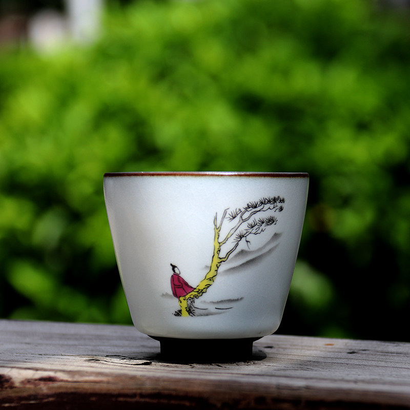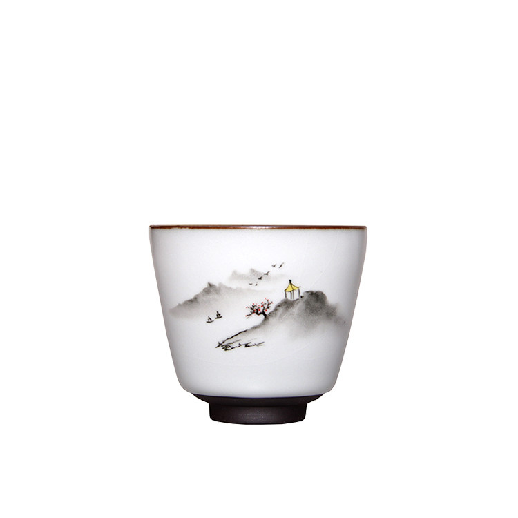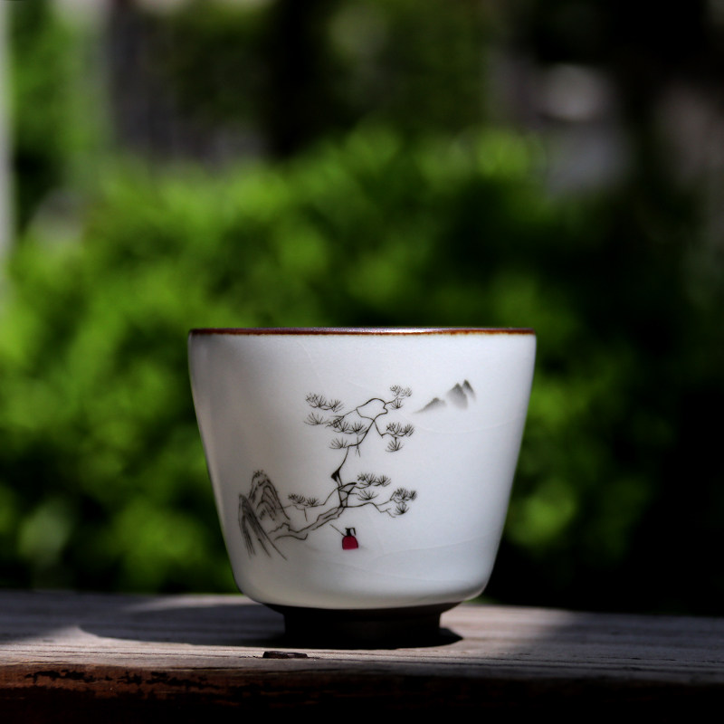 Official kiln personal cup ink landscape painting slanted cup master cup ceramic Ru kiln tea cup Ru porcelain tea cup single cup