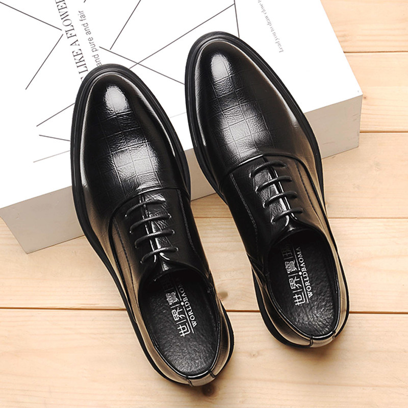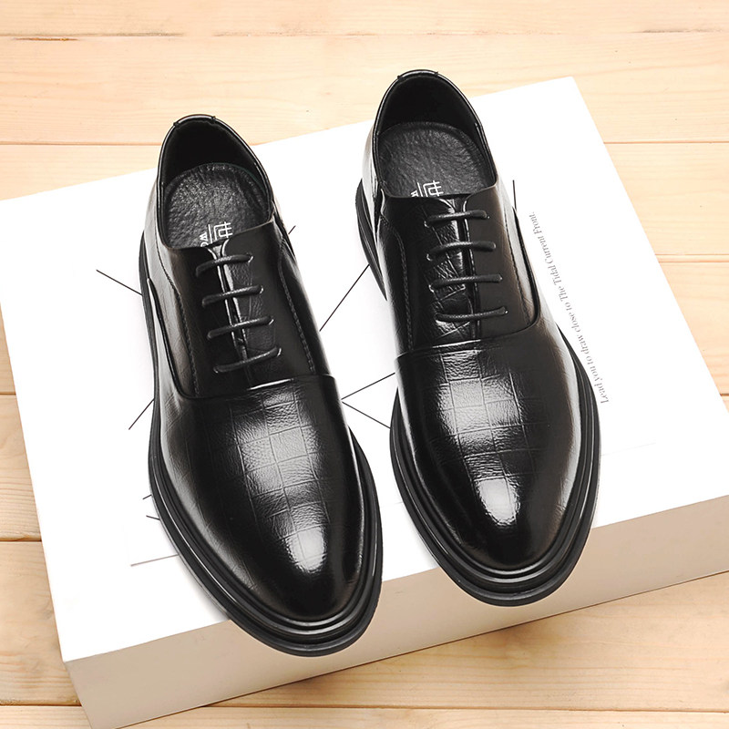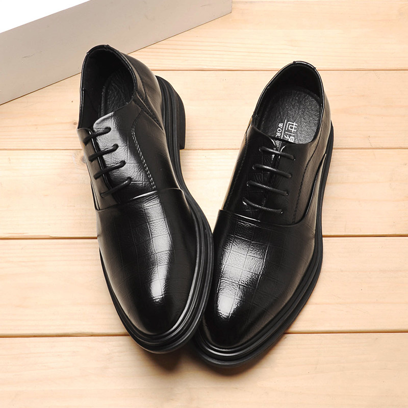 Spring business formal casual leather shoes men's British Korean version of the trend thick bottom pointed toe lace up black wedding shoes