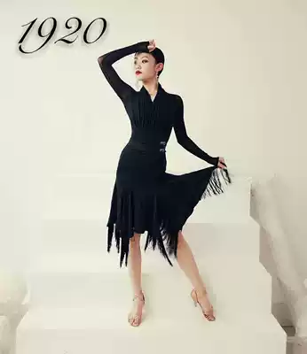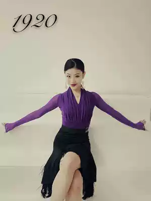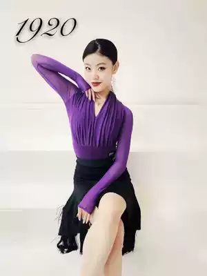 Amanda dance clothes 1920 036 Latin dance practice clothes pleated stitching mesh jumpsuit sexy versatile