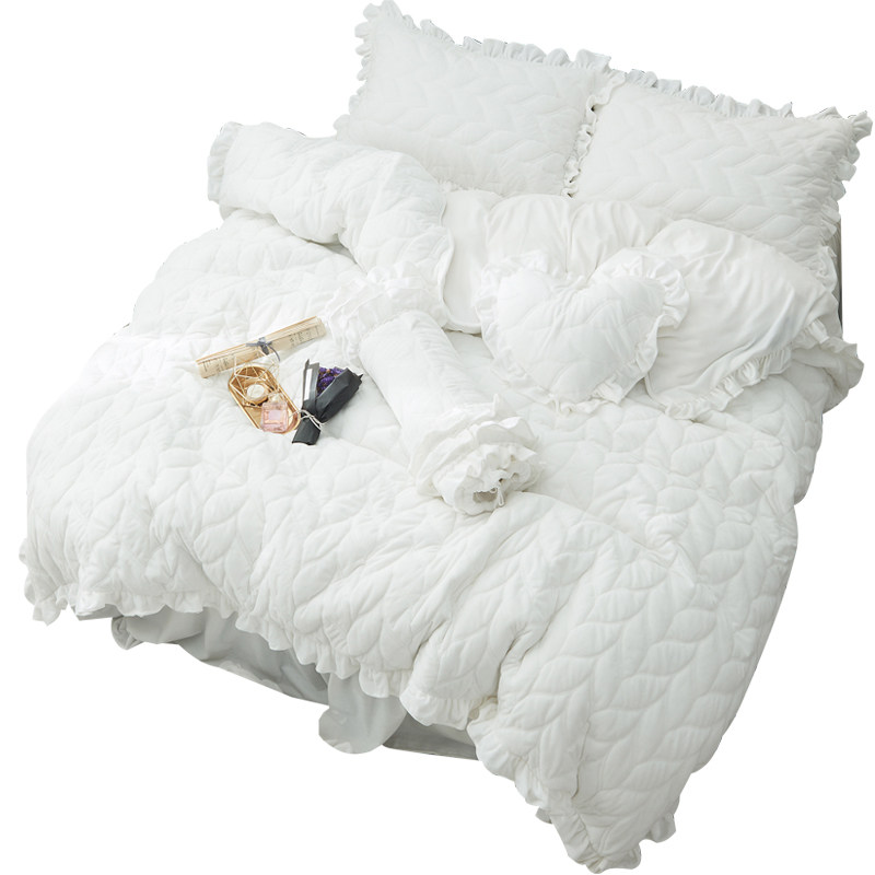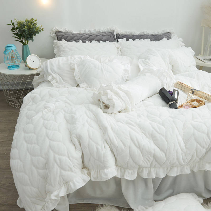 Net red four-piece coral velvet princess wind white quilt plus velvet quilt cover girl heart flannel double-sided velvet winter
