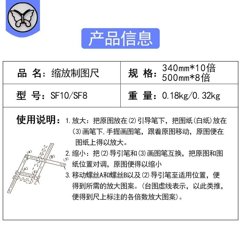 Butterfly card zoom drawing ruler 340MM*10 times with glass zoom ruler design painting drawing zoom ruler SF10