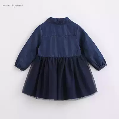 (Discount) Mark Jenny autumn girls denim stitching mesh dress children skirt 201095