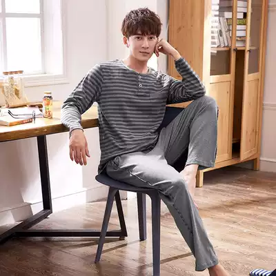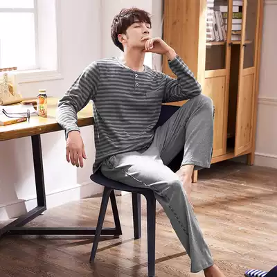Men's pajamas spring and autumn cotton long sleeve middle-aged father suit middle-aged autumn and winter Cotton Four Seasons home wear