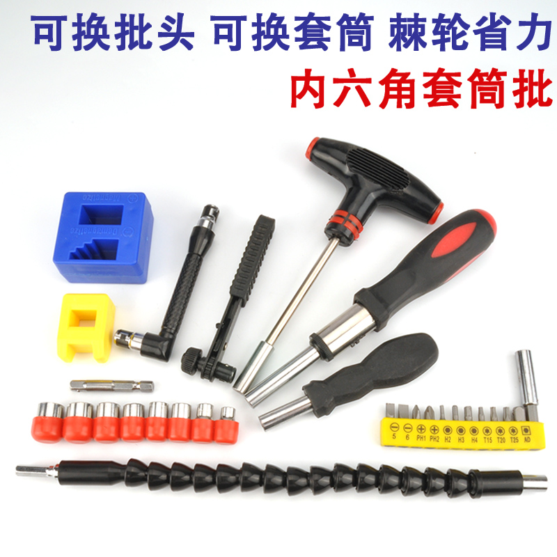 Screwdriver handle bread handle ratchet sleeve batch head 12-piece set double-headed L-shaped sleeve sleeve 8-piece set iron ratchet labor-saving sleeve universal shaft mini magnetizer ordinary magnetizer connecting rod