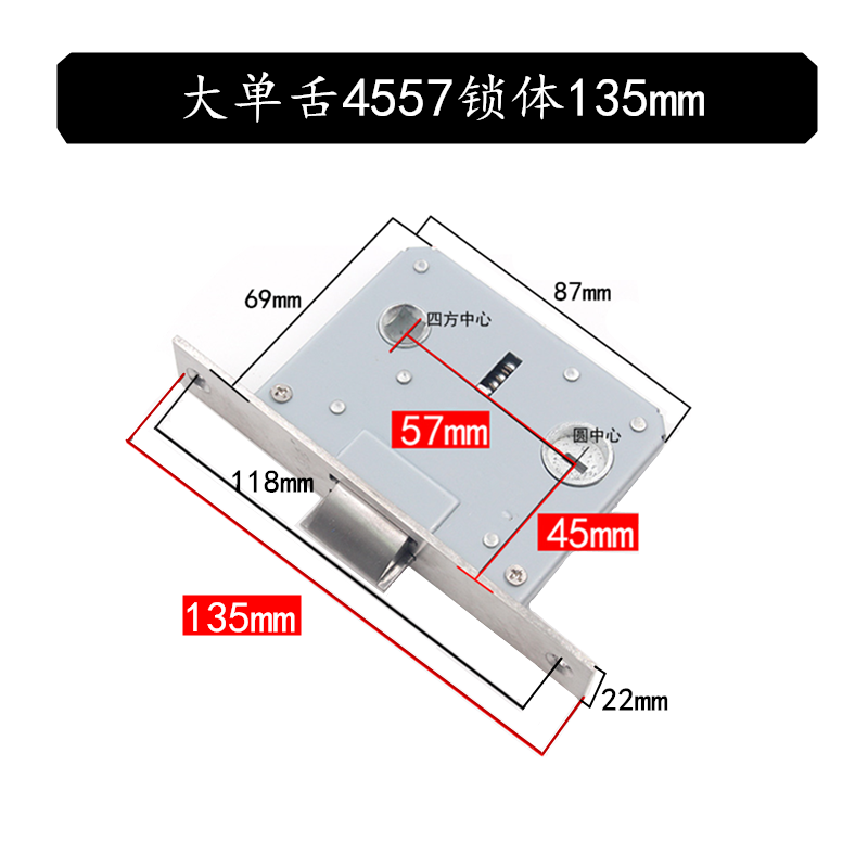 Universal single tongue 4557 lock body 135mm solid wood door false insertion core handle room door bedroom door lock core accessories