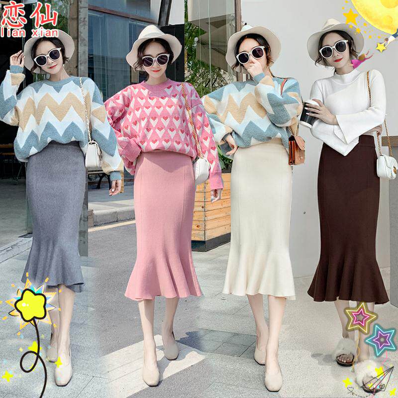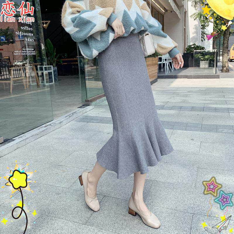 Pink Black Grey Coffee Color Almond Tail Half Body Dress Skirt High End Autumn Winter New Bag Hip Black Small Scent Wind Winter Irregular Lotus Leaf Side High Waist