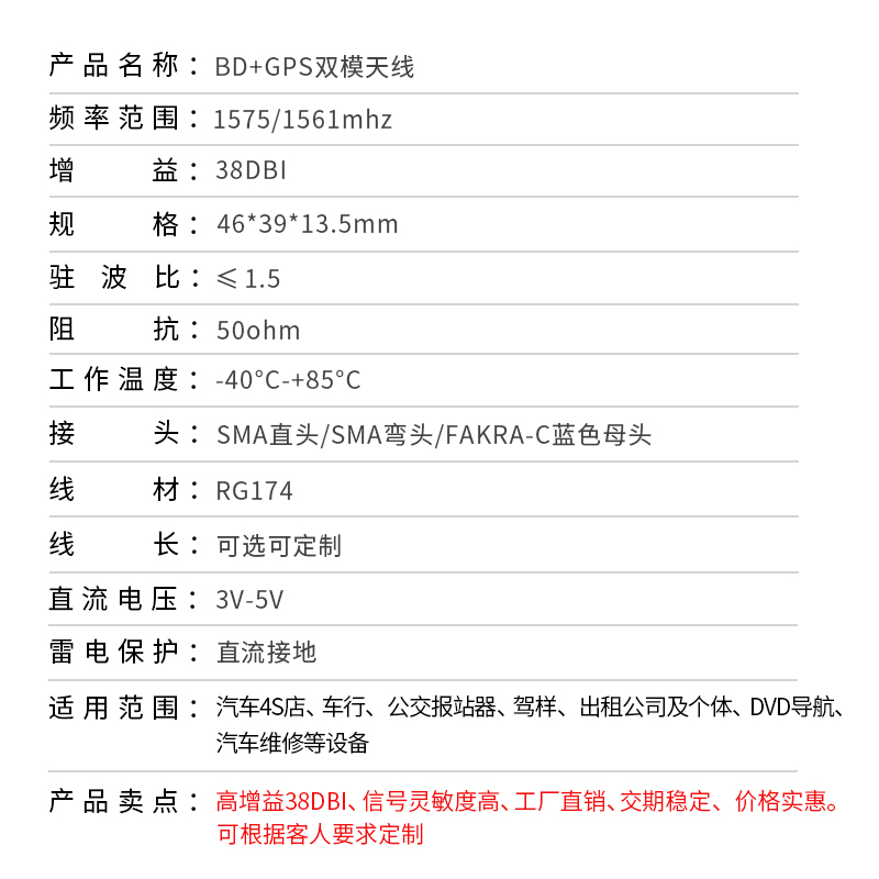 BD GPS two-in-one active ceramic antenna Beidou GPS dual-mode satellite positioning vehicle antenna gain 38DB