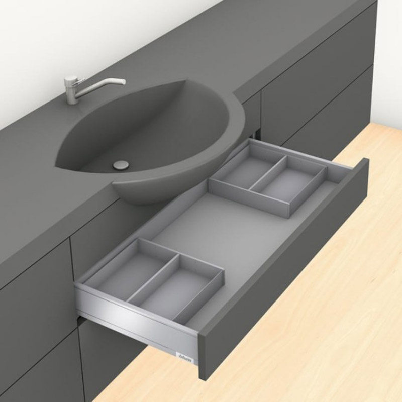 Blum AMBIA-LINE drawer inner divider box Hunter gray mercerized white steel knife and fork box