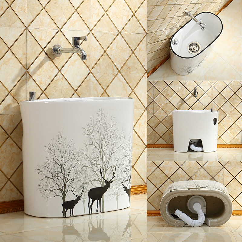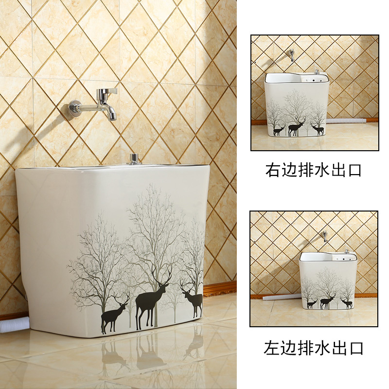 Ceramic wash mop floor-to-ceiling balcony powder room mop pool household large one-button table-controlled double-drive mop pool