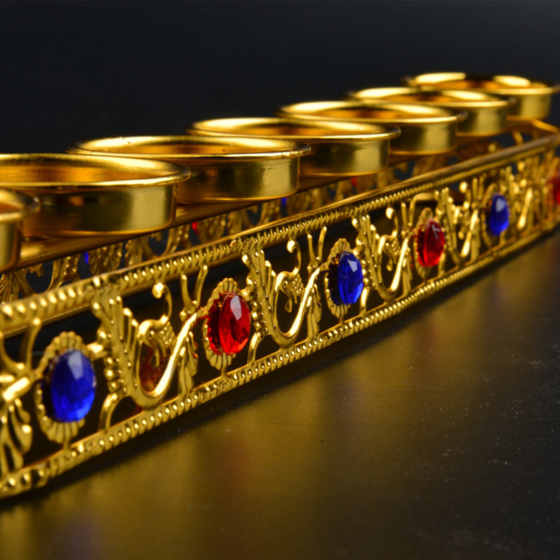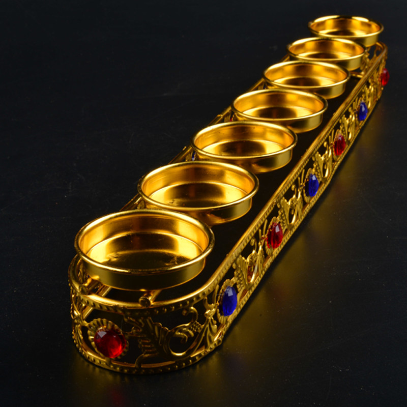 Tibetan Buddhist house dedicated to the Buddha Former single row Seven starry crisp oil lamp holder Long Ming candle lamp holder 33cm Long