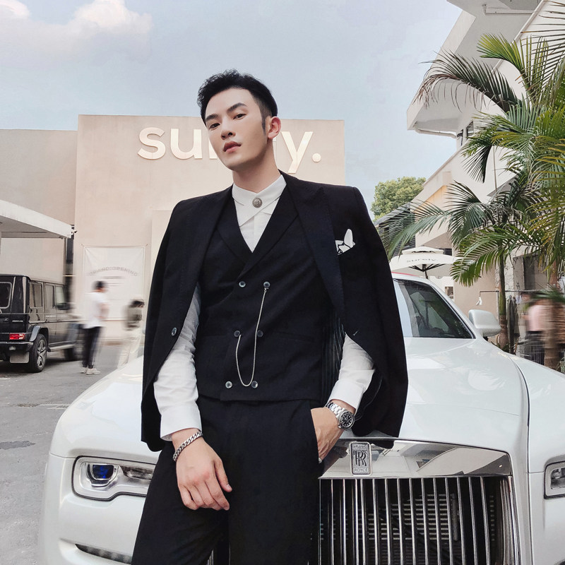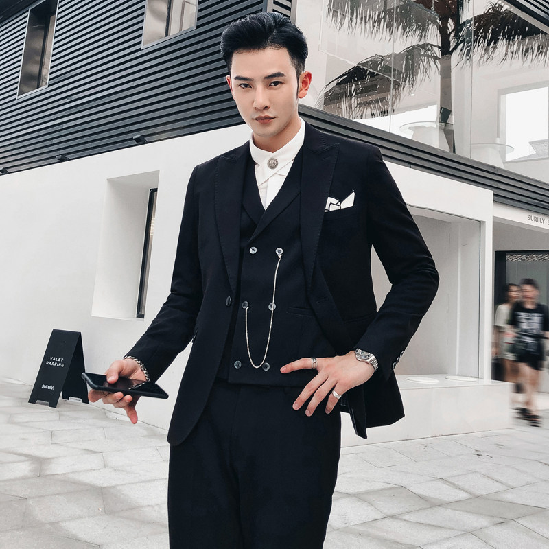 British men's suit slim Korean version of the three-piece suit Wedding dress Groom banquet dress Small suit tide brand