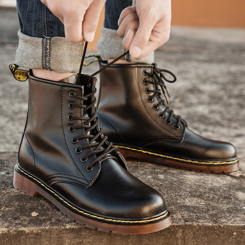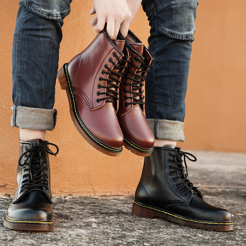 Winter high tube small size men's shoes 35 trend 36 increase in 37 autumn leather plus velvet warm couple Martin boots men