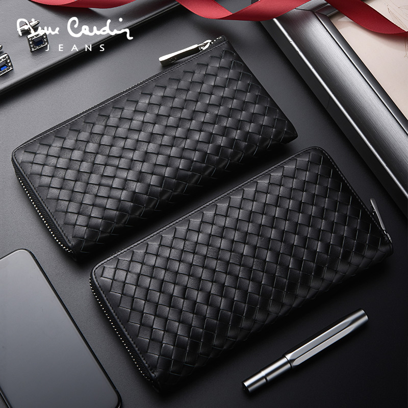 Pilkardon wallet men's long version of braiding woven textured pure real cow leather brand name new hand grab wallet tide card