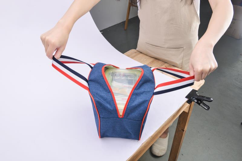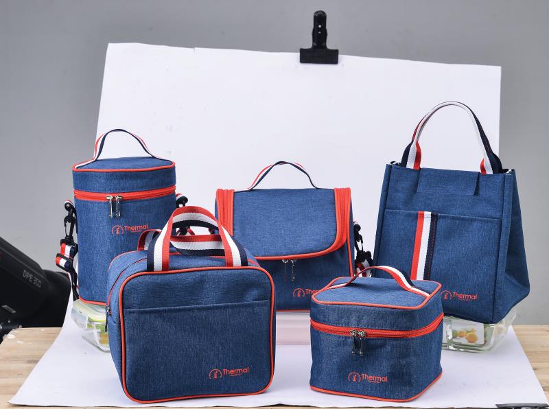 Hand-in-hand lunchbox with meal, packed with large number of aluminum foil student hand carrying warm lunch insulated bag