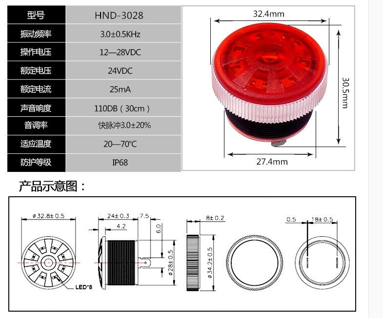 HND-3028 waterproof buzzer flash buzzer 12V 24V intermittent buzzer IP68