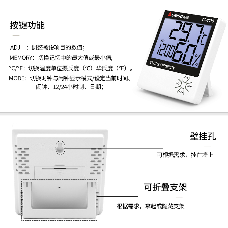 Chigo Electronic Thermohygrometer Thermometer Home Digital Display Indoor Thermometer Dry Wall Hanging Baby Room Temperature Meter