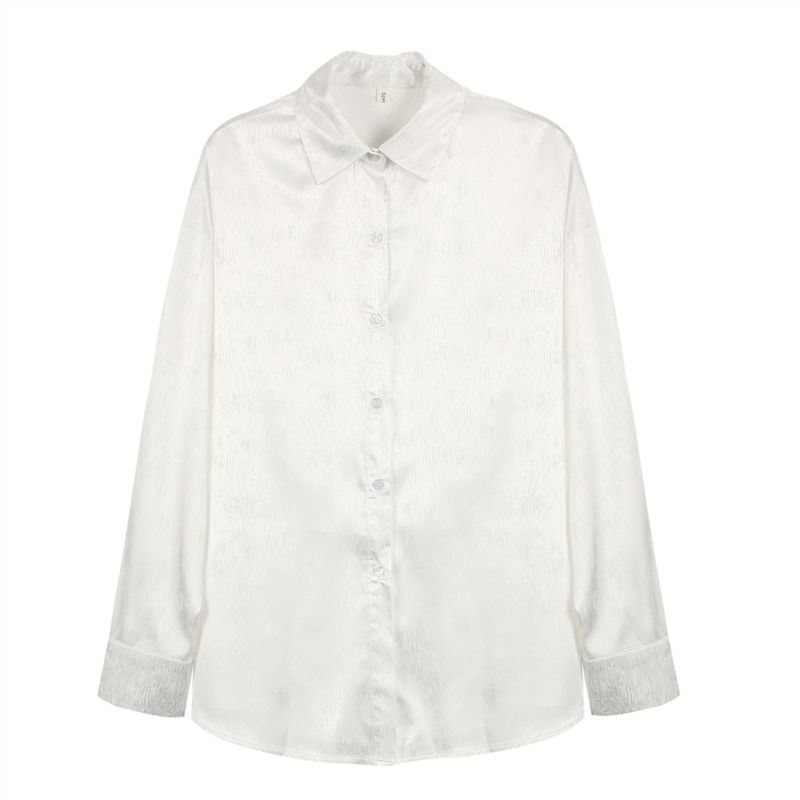 WYZ pattern satin shirt fashion shirt BF style loose shirt fashion elegant neutral trend women's Korean version