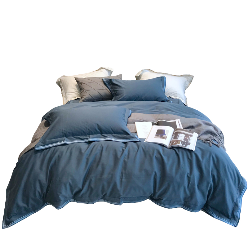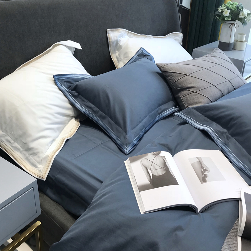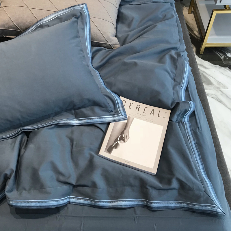 High-grade simple solid color Nordic wind 80 long-staple cotton light grinding pure cotton four-piece set of light luxury autumn and winter bedding