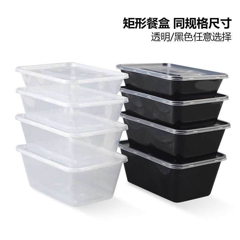 Disposable rectangular lunch box with lid plastic delivery packaging box thickened transparent fresh fast food lunch box