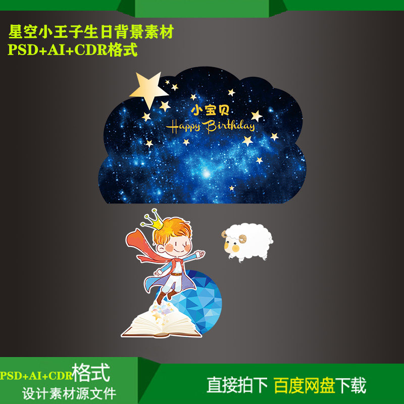 Starry sky little prince baby feast hundred days day party welcome background KT board inkjet design PSD file