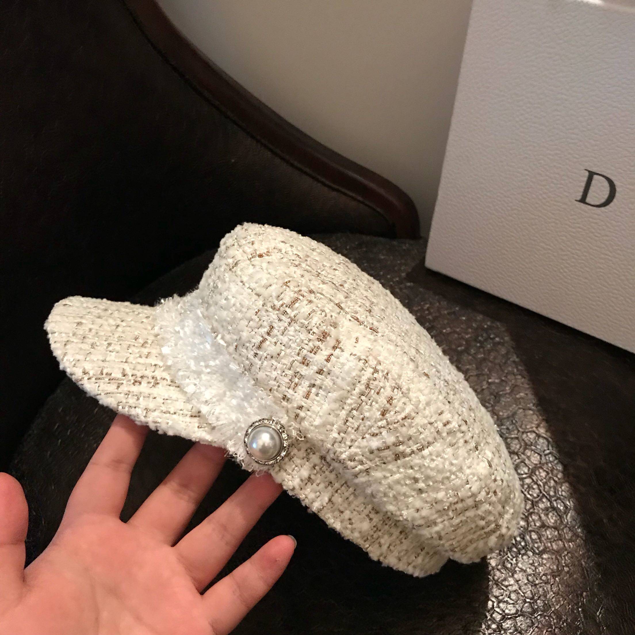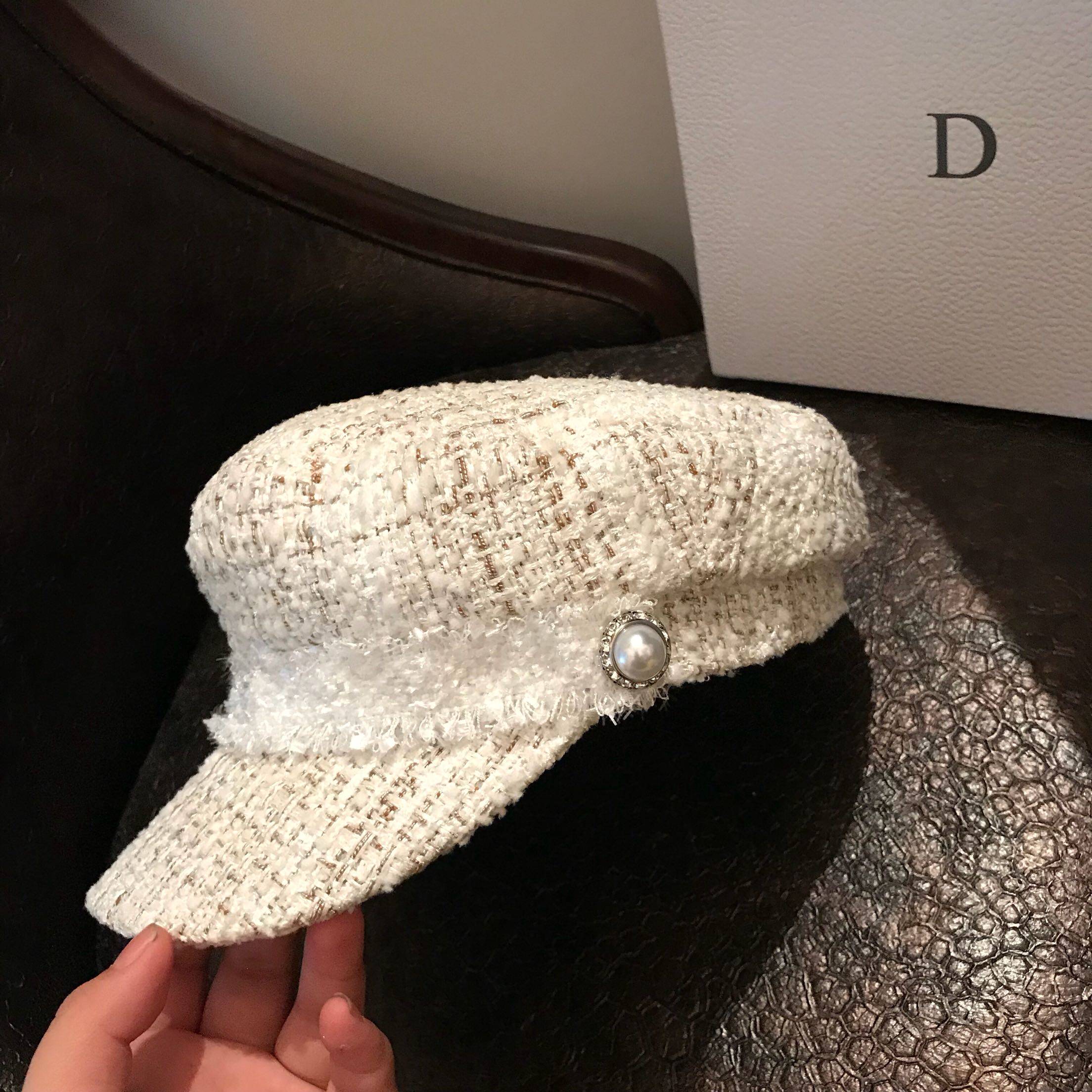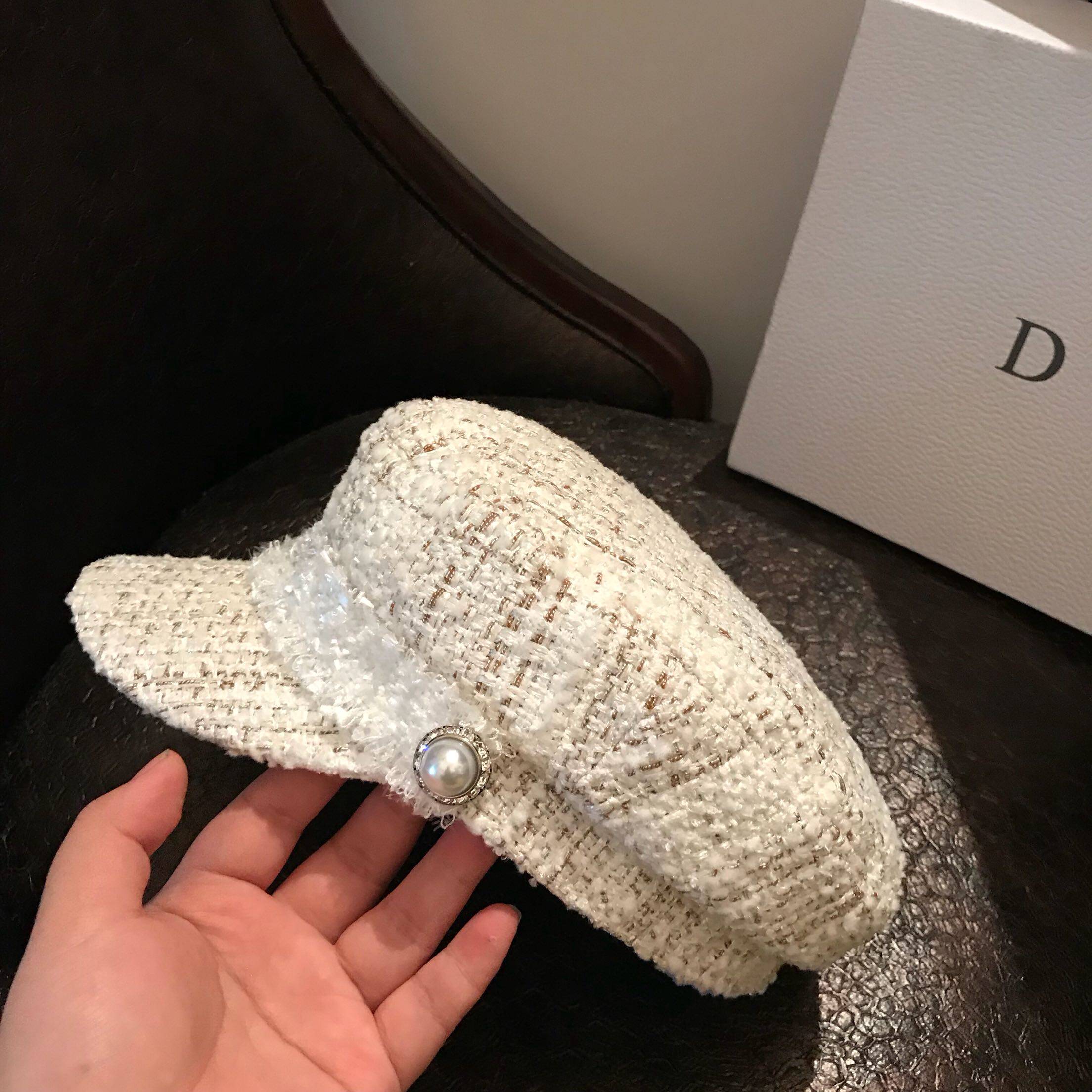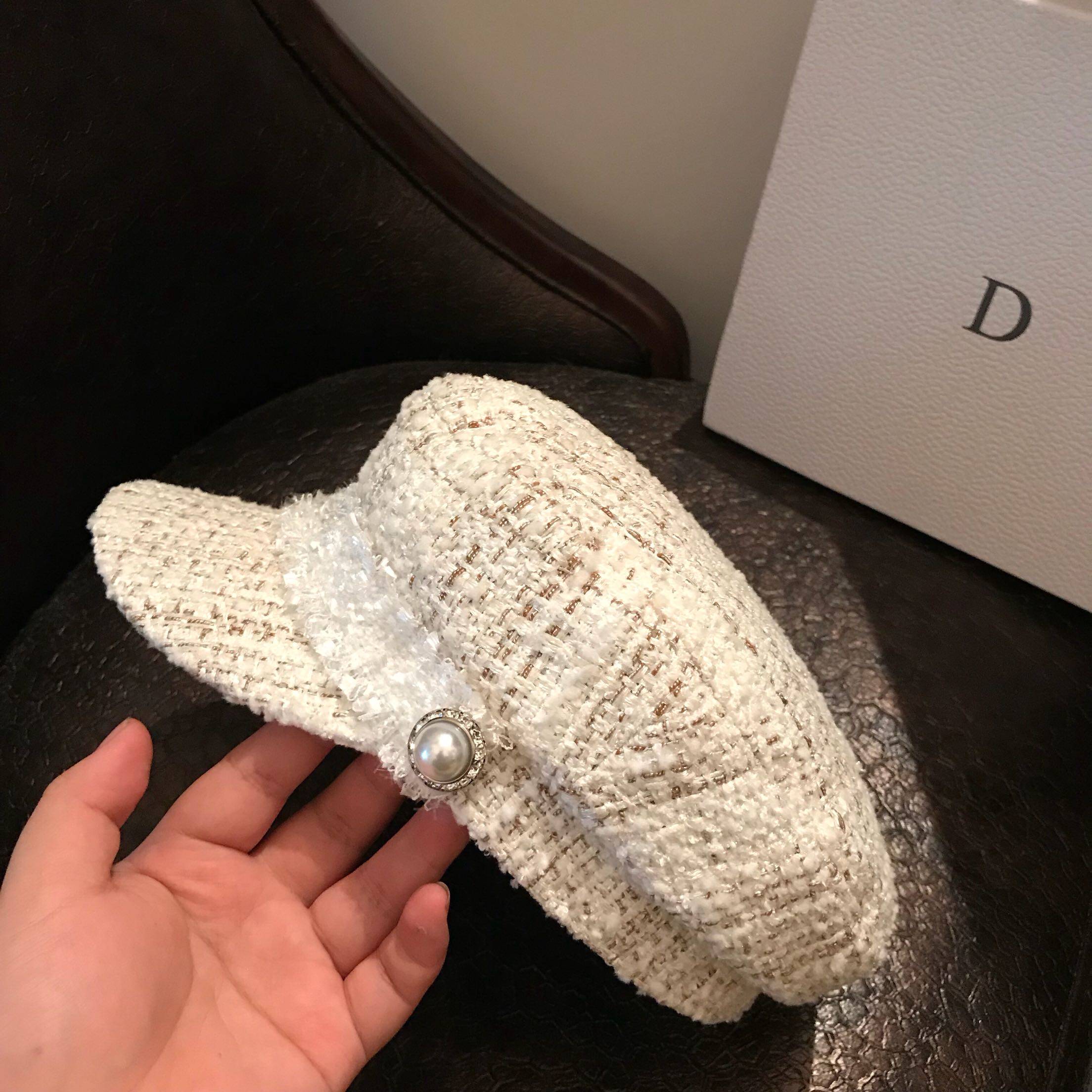 Inglées Fashion Coarse Flowers Fashion Cap Woman 100 hitch a winter duck tongue cap rice white name Yuanyan Berehat tide